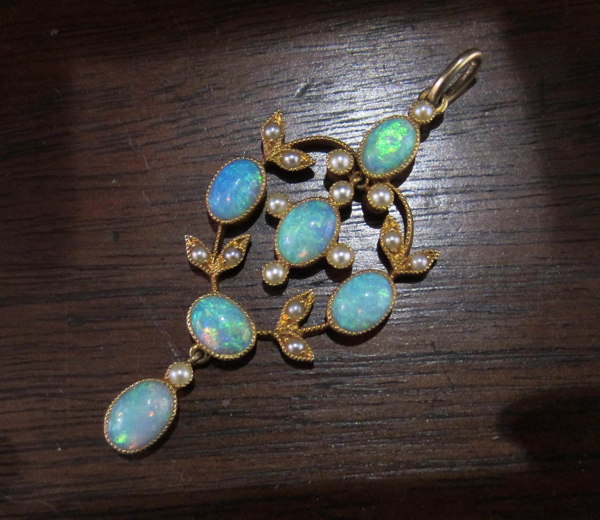 SOLD--Absolutely Gorgeous Opal and Pearl Pendant 18k c. 1910