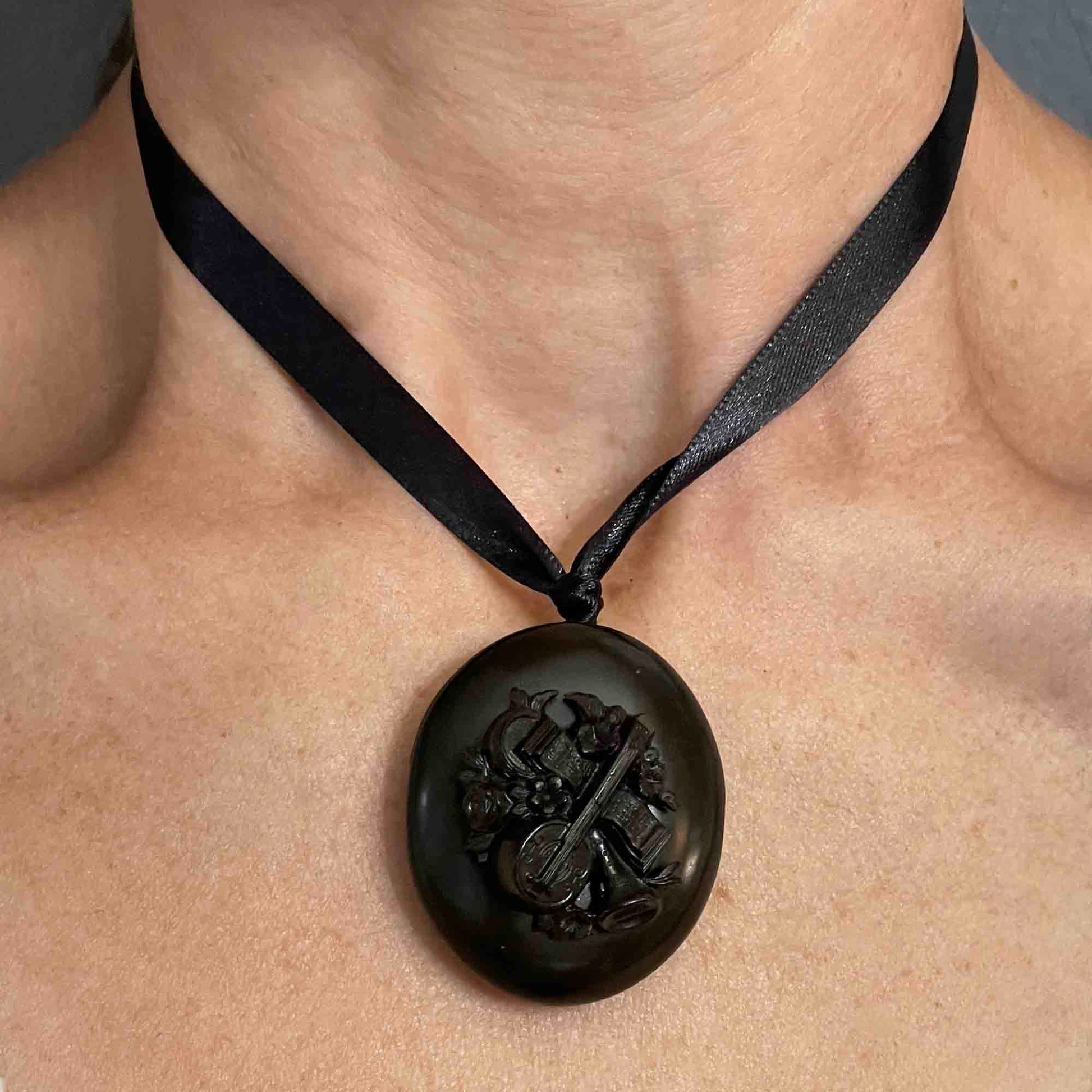 Antique Banjo Horn Gutta Percha Vulcanite Mourning Locket